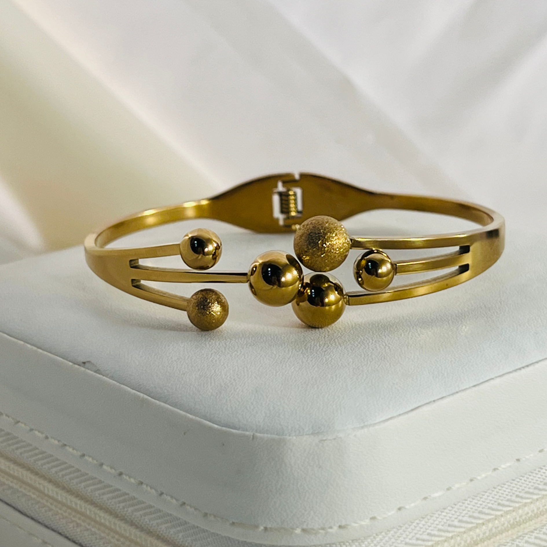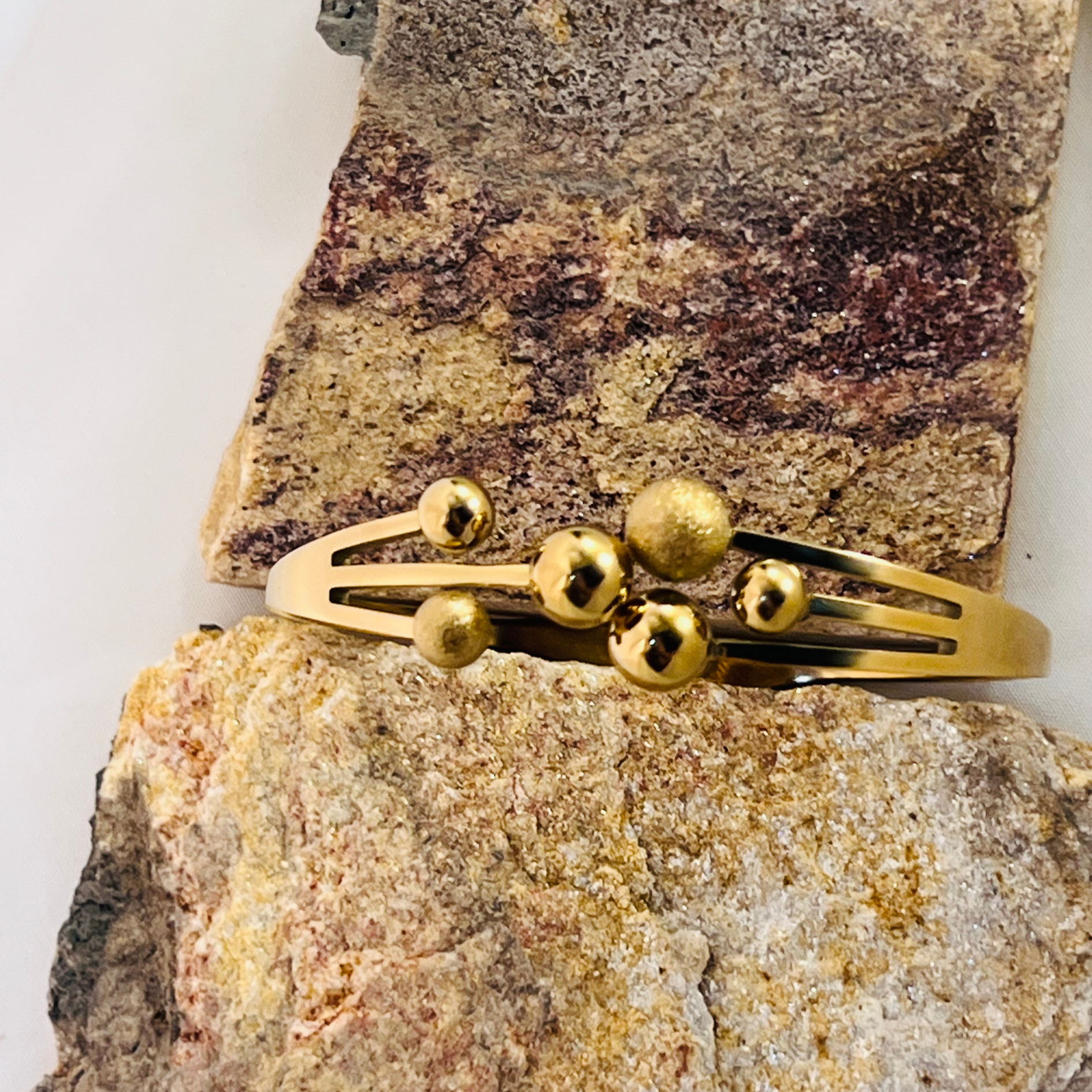 Classic gold plated cuff bracelet, minimal yet eye-catching.